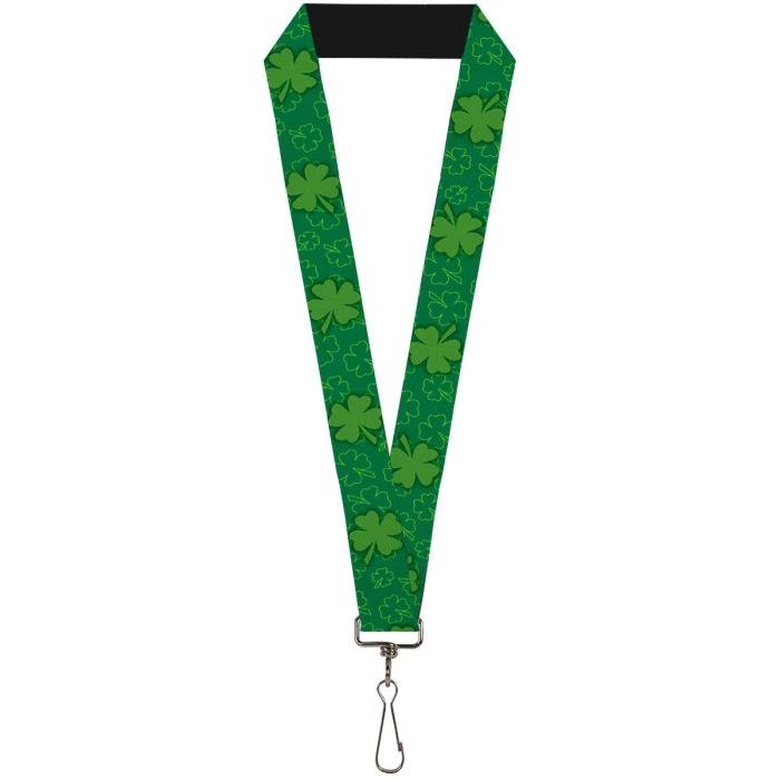 Buckle-Down Lanyard - St. Pat's Clovers Scattered2 Outline/Solid Greens