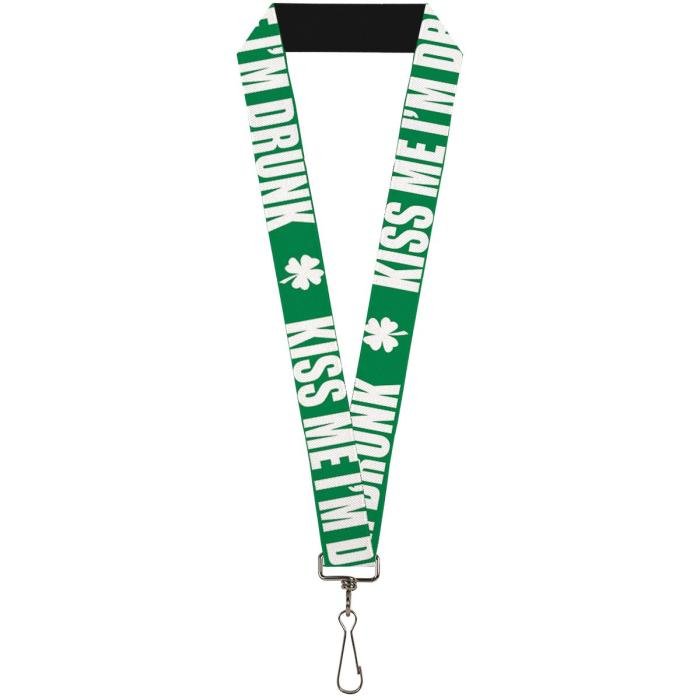 Buckle-Down Lanyard - St. Pat's KISS ME I'M DRUNK/Shamrock Green/White: