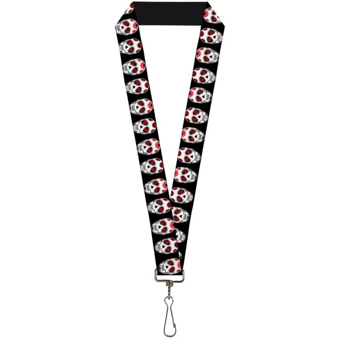 Buckle-Down Lanyard - Sugar Skulls Black/White/Red: