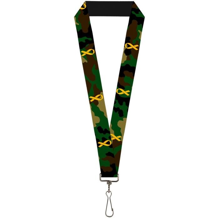 Buckle-Down Lanyard - Support Our Troops Camo Olive/Yellow Ribbon: