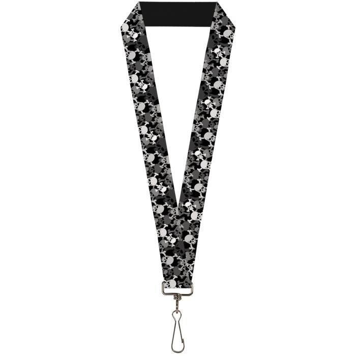 Buckle-Down Lanyard - Top Skulls Stacked Black/Gray/White: