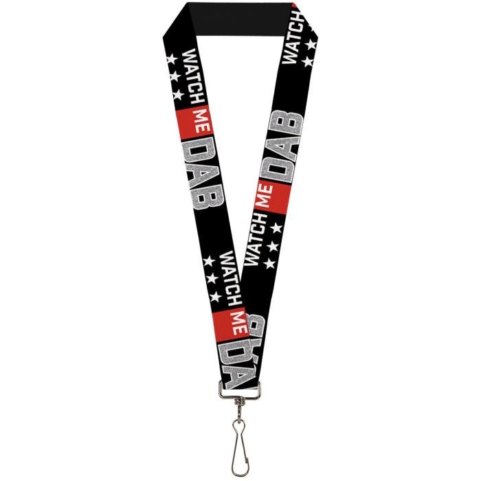 Buckle-Down Lanyard - WATCH ME DAB/Stars Black/Red/White/Crackle Gray: