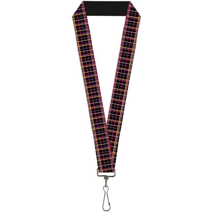 Buckle-Down Lanyard - Wire Grid Black/Orange/Purple