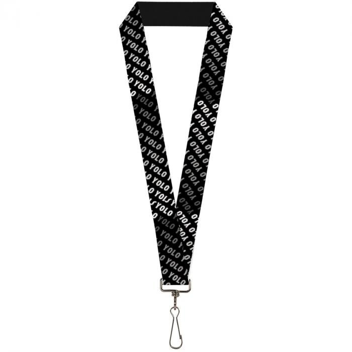 Buckle-Down Lanyard - YOLO Diagonal Black/Gray/White: