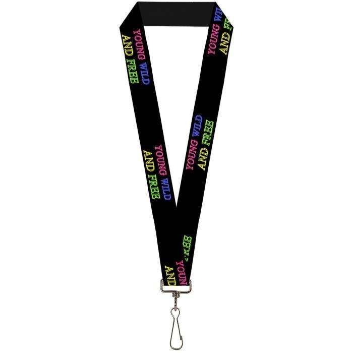 Buckle-Down Lanyard - YOUNG WILD AND FREE Outline Black/Multi Neon: