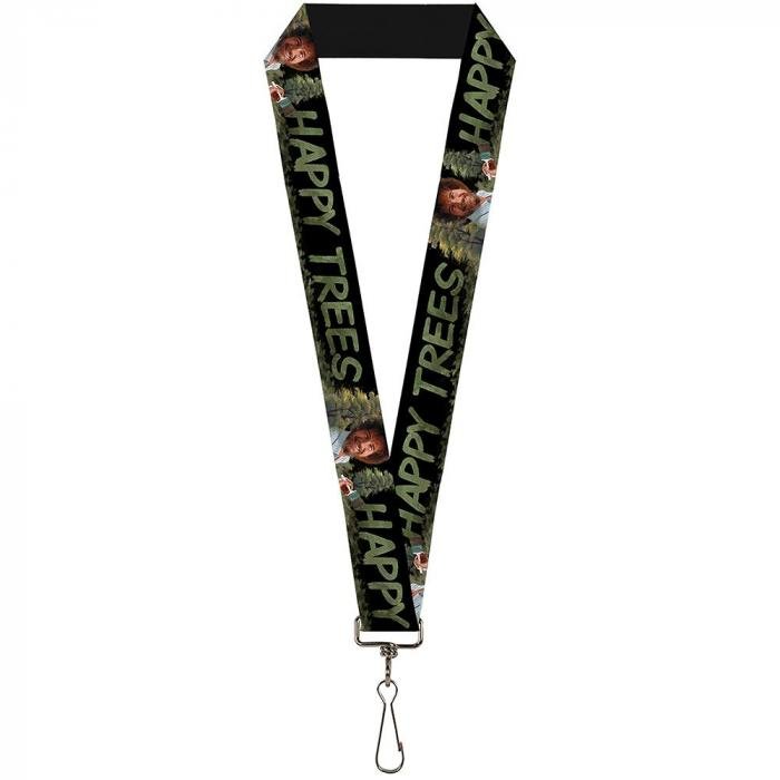 This lanyard is made out of stretchy nylon, and has a steel clip to easily detach your keys. Show off your favorite character or brand with our awesome lanyard! The lanyard is 1.0 Inch wide, and a standard length. This product is Made in USA by Buckle-Down, Inc. and Officially Licensed by Bob Ross.