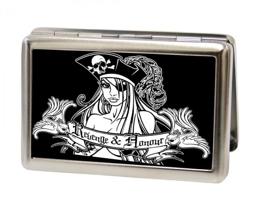 This metal ID case is an awesome way to carry around cash, cards, and identification. Slim and sleek, this stainless steel business card holder measures 4.5x3.0x1.0 Inches, and easily fits into pockets or bags. This product is Made in the USA by Buckle-Down Inc. and Officially Licensed by Sexy Ink Girls.