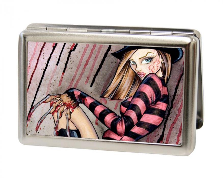 This metal ID case is an awesome way to carry around cash, cards, and identification. Slim and sleek, this stainless steel business card holder measures 4.5x3.0x1.0 Inches, and easily fits into pockets or bags. This product is Made in the USA by Buckle-Down Inc. and Officially Licensed by Sexy Ink Girls.