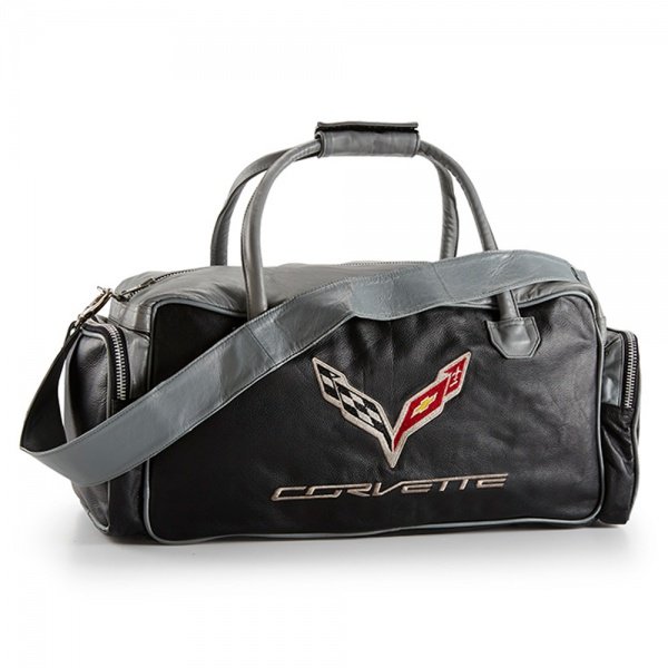 Corvette Leather Road Trip Bag With C6 Embroidered Emblem