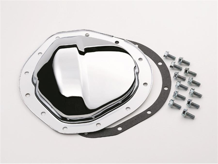 The Mr. Gasket chrome plated rear end cover is made from heavy-gauge steel, and comes complete with bolts and gaskets.