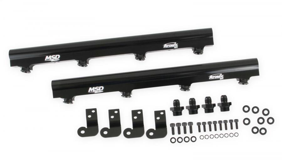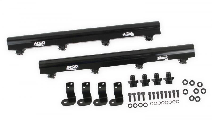 MSD's new Atomic EFI billet fuel rails enhance the great looks of your Atomic AirForce intake manifold. Available as rails only, or as complete kits that include all necessary plumbing, these fuel rails are a perfect addition to your engine bay. The bright dip, black anodized finish with laser etched logos will look great for years. MSD Atomic fuel rails feature a 5/8" diameter fuel passage that provides the flow capacity necessary to fuel high horsepower applications making them the perfect match for your Atomic AirForce intake manifold.