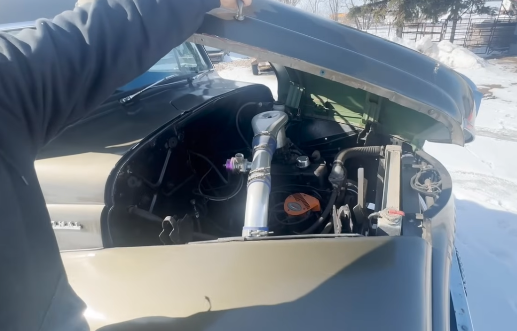 When he arrives at TransCanada Trucks, the truck engine is revealed with its three-way hood opened. It's a 292 with turbo and four-speed overdrive transmission.