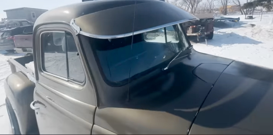 Above the windshield is a visor which was a trademark of the Internationals. The truck in this video was built in Regina "when we actually built cars in this country," Kevin Gennis of Trans-Canada trucks says in the video.