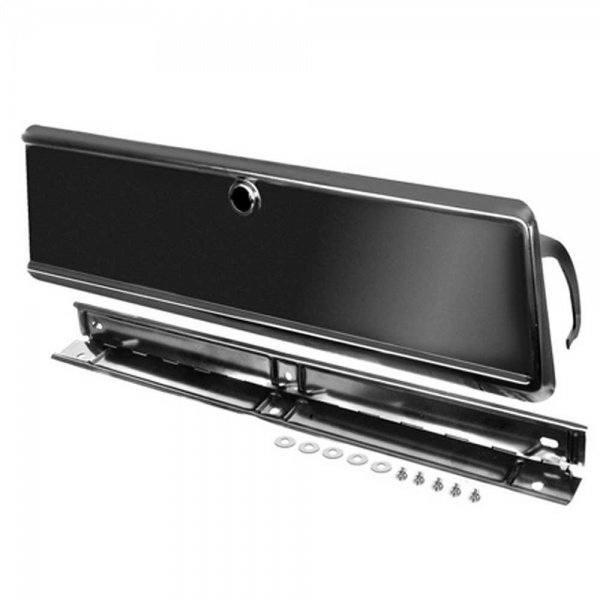 Original glove box doors are often rusty, pitted and riddled with tiny dents. Sure, you can spend hours trying to bondo the dents out. Why go through the hassle of all that work? Our door is manufactured in steel like the original and is ready to prep and paint. The hinge, arm and hardware is included.