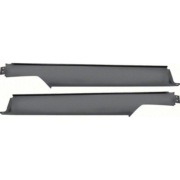 Reproduction 1975-79 2 door coupe interior lower quarter window moldings. Each molding is injection molded and will replace the original exactly. Installs in the lower quarter window area horizontally along the bottom. OE part number 1667088 (RH)-1667089 (LH). Available in black only, paint to desired color. Sold in pairs only.