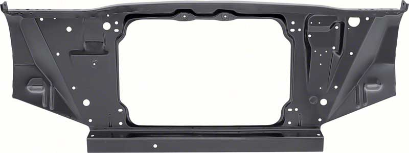 Reproduction of the original radiator support assembly designed for use exclusively with 1966-67 Chevy II Nova models. This structural component is mounted directly behind the grille and serves as the primary support for the radiator. Each support is precision manufactured in stamped steel to exact factory specifications, replicating the original design, fitment, and appearance. Features correct pre-punched mounting holes to ensure a hassle-free installation. Finished in black EDP coating for lasting corrosion resistance and durability.