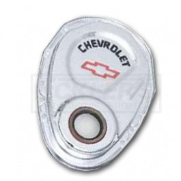 Nova Timing Chain Cover, Small Block, Chrome, With Chevrolet Script & Bowtie Logo, 1967-1969: