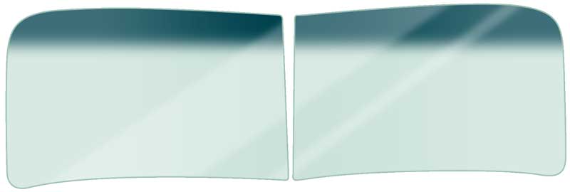 Reproduction front windshield glass for 1947-53 Chevrolet and GMC pickup truck models. Each glass is manufactured to correct dimensions using quality laminated safety glass designed for protection against road debris. The windshield comes as a 2 piece (RH and LH) glass and features a green tint with a blue upper shade as pictured.