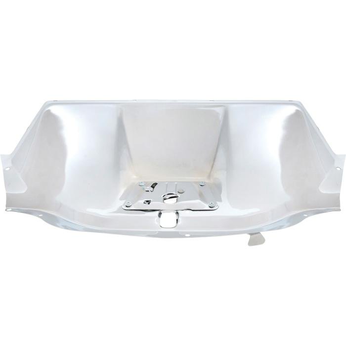 Reproduction of the hood latch panel designed for use with 1947-55 Chevrolet and GMC Pickup truck models. Each hood latch panel is precision stamped from quality stainless steel and finished in satin chrome for an enhanced, show-quality appearance. Includes the pre-installed safety catch for a complete, ready-to-install solution. Mounts in front of the radiator and attaches to the top grille bar for proper hood alignment and secure latching.