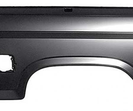 Reproduction bed side panel for 1951-52 Ford F1, F2, F3, F4 short bed pickup truck models. Each bed side panel is manufactured in quality 19 gauge steel featuring the correct shape, size, length and holes that match the original panel for an authentic appearance and fit. Arrives with a black EDP coating for rust and corrosion prevention. Fits the RH passenger side.