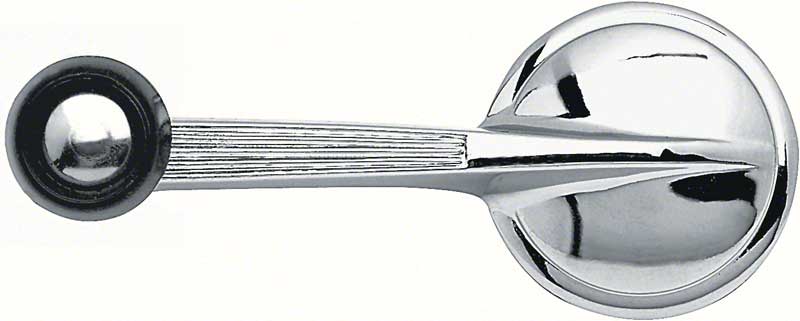 OER® reproduction of the original window crank handle designed for use with various 1953-60 Chevrolet models. Each handle is manufactured in quality die-cast zinc and chrome plated offering a highly polished appearance. Features a black knob with chrome insert for an authentic appearance. Includes C-clip for installation. Sold individually.