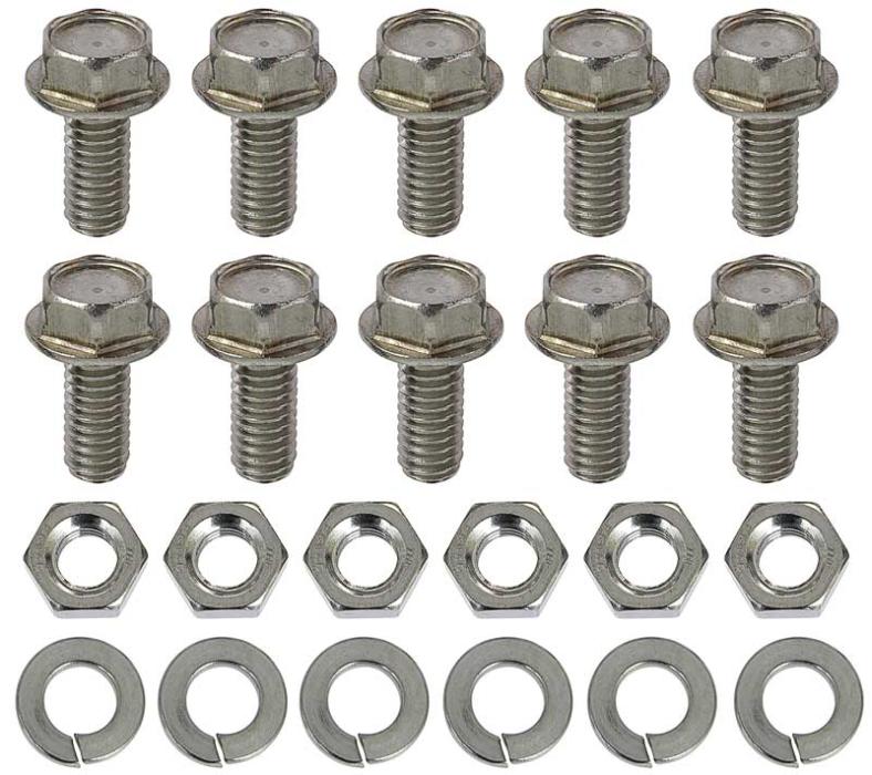 Reproduction of the hardware required to install the front bed panel on 1954-87 Chevrolet Pickup truck models with wood floor, and 1954-87 GMC stepside models. This front panel stainless steel hardware kit includes all the necessary nuts, bolts and washers to mount the front panel to the bed side panels on beds with wood floors.
