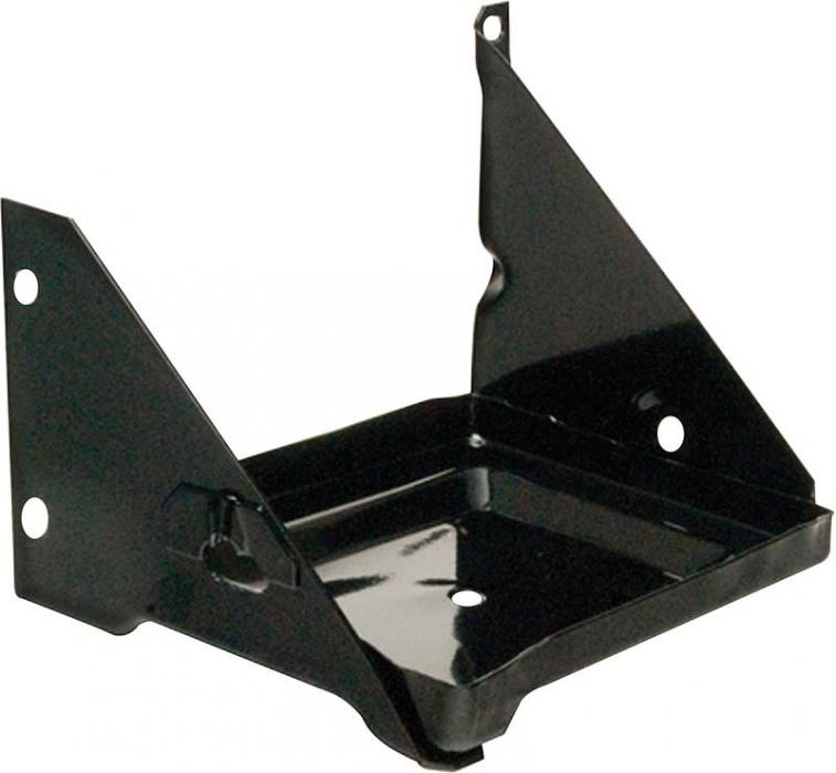 Reproduction battery tray for 1955-56 Chevrolet Bel Air, 150, 210, and Nomad models. Each battery tray is manufactured in stamped steel to original factory specifications featuring correct contours for an authentic appearance and fit. This tray is for use on models that features a firewall mounted battery tray. Comes finished in a black EDP coating for rust and corrosion prevention.