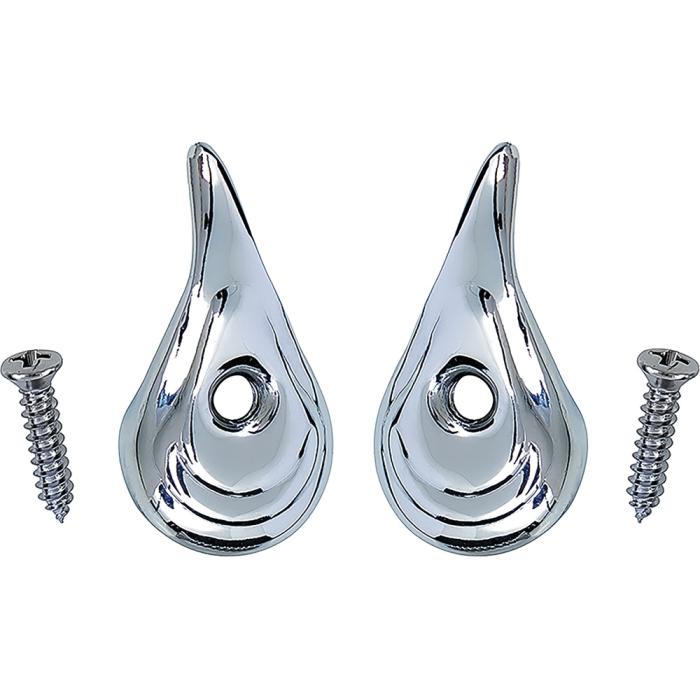 High quality reproduction of the original chrome hooks located in the rear inner section of the interior for hanging coats, clothes etc. Each coat hook is manufactured in zinc die-cast materials and include a high polished finish. Includes mounting screws for installation. Sold in pairs.