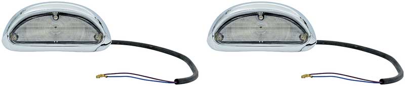 Reproduction of the original park lamp assemblies designed for use with 1955 Chevrolet Bel Air, One Fifty Series, Two Ten Series, and Nomad models. Each park lamp assembly is manufactured to original factory specifications replicating the original in quality, fitment and design. These parking lamp assemblies feature show-quality chrome plated housings, new lenses, sockets, cables, light bulbs, and gaskets. Mounting nuts available separately.