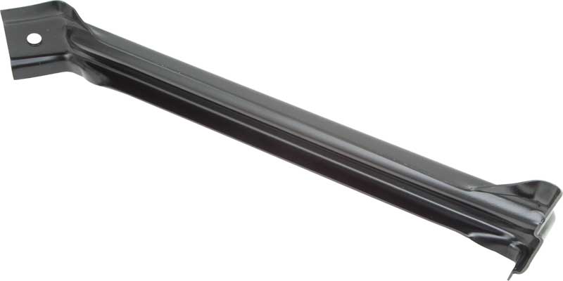 Reproduction outer rear bumper bracket for 1955 Chevrolet Bel Air, 150, 210, and Nomad models. Each bracket is manufactured in stamped steel to the factory configuration and replaces the old or bent original bracket exactly. The rear bumper mounts using four brackets, two inner and two outer. Bracket features a black EDP coating for rust and corrosion prevention. Sold individually.
