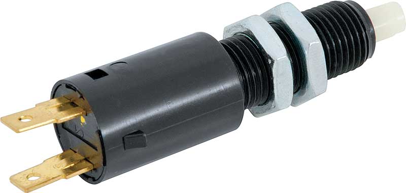 Reproduction of the original brake light switch designed for use with various 1955-1990 AMC, Chrysler, Dodge, Plymouth, General Motors, and Ford models as listed below. Activated by the brake pedal arm, this switch causes the rear lamps to illuminate when the brakes are applied. A commonly worn out switch.