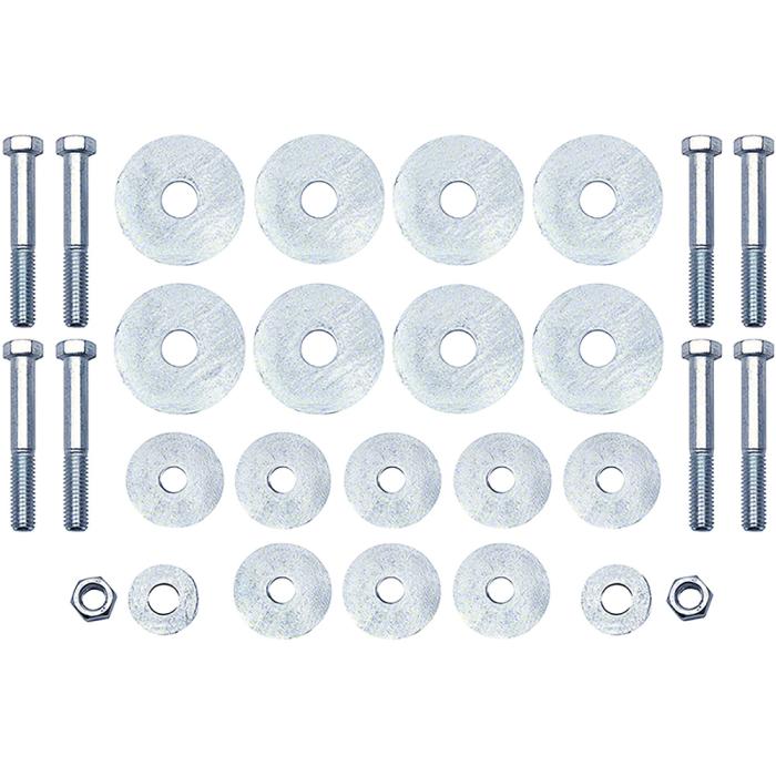 This high quality bolt kit includes the bolts, nuts, and washers required to assemble the body to the frame on all 1960-1964 Chevrolet full size passenger cars except convertibles. Designed to replace rusted, incorrect, or missing factory hardware, this set provides the proper fasteners needed for a secure and accurate restoration. Each bolt and fastener features a clear zinc finish for added corrosion resistance and long lasting durability.