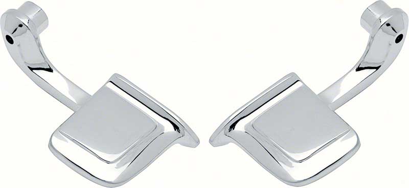 Reproduction die-cast inner door handles for various 1959-67 Buick, Chevrolet, Pontiac, and Oldsmobile full-size passenger car models as listed. Manufactured to factory specifications, each handle includes a highly polished chrome finish with engraved details for an authentic appearance. Sold in pairs. Fits front or rear. Includes RH and LH door handles only. Mounting screw is not included, must use original. Replaces original GM part numbers # 4787463 & 47874634.