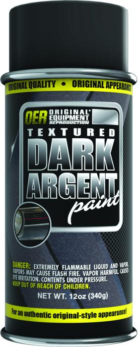 OER® Textured Dark Argent Silver Paint for your classic Mopar vehicle restoration. This paint is produced to match factory paint color as closely as possible and offers excellent paint coverage and adhesion even on difficult to paint surfaces. Comes in a 16 Oz. Aerosol Can (Net Wt. 12 Oz.)