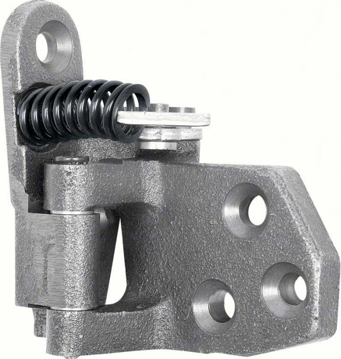 High quality reproduction door hinge designed and manufactured to precise factory specifications for 1962-67 Chevy II and Nova models. Each hinge is produced using premium cast steel with the correct factory configuration and includes the hinge spring and attaching bolts for both the door jamb and door sections. This hinge comes fully assembled and ready to install, ensuring proper door alignment and smooth operation. Designed for use on the RH (passenger side) door.