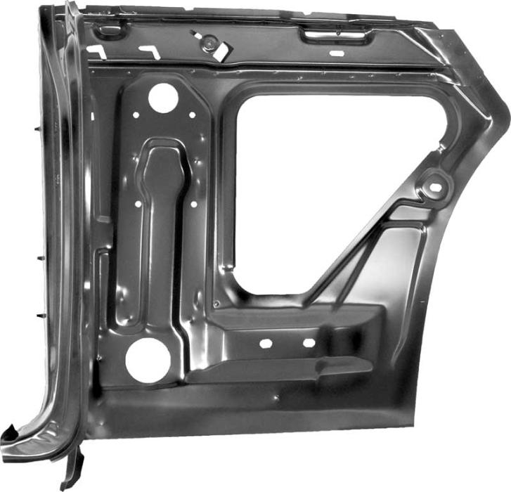 Reproduction inner rear quarter panel section for 1963-64 Impala, Bel Air and Biscayne 2 door models. Each inner quarter panel is manufactured in stamped steel to original factory specifications featuring correct contours for an authentic appearance and fit. Mounts to the inner body next to the rear seat and has the correct contours and holes, including the rear door jamb area. Comes finished in black EDP coating for rust and corrosion prevention.