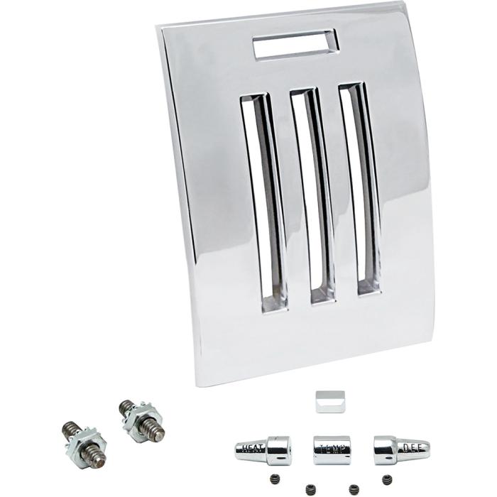 Reproduction of the original heater switch plate designed for use on 1964-66 Mustangs. Each plate is a manufactured to duplicate the original in quality and appearance. This is the chrome die-cast metal plate that the heater control switch arms slide through. Includes attaching bolts with nuts. Pressure die cast and chrome plated. Superb chrome plating on the face. Includes mounting studs and nuts. Also includes a complete set of four chrome die-cast knobs with the correct "HEAT", "TEMP" & "DEF" lettering along with set screws for installation. Careful attention has been paid to detail with the black painted lettering. Replace the heater plate and knobs with this convenient kit.
