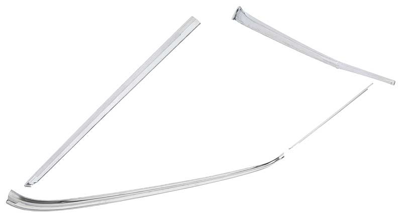 Reproduction of the original windshield molding set designed for 1964-68 Mustang coupe and Fastback models, and 1967-68 Cougar coupe models. This reproduction is manufactured in stainless steel as original. This 5-piece reproduction will fit both coupe and fastback models. Installation clips included with each set (22 clips and 22 screws).