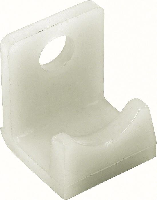 Reproduction of the original front headlamp bezel lower mounting clip designed for use on 1964 GM Impala and full size models. Clips are manufactured with injection molded tooling replicating the original in quality and design. This clip rivets on to the grill and helps keep the headlamp bezel in place after mounting. 4 required per vehicle. One lower bezel clip required per bezel.