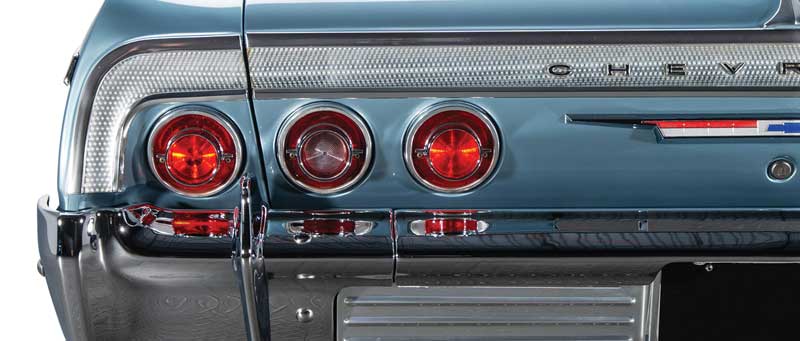 Reproduction of the original inner tail cove moldings designed for use with 1964 Impala SS and Bel Air models. Each molding is manufactured in stamped aluminum replicating the original contour and factory design. Will replace the old or worn out original moldings exactly. Includes mounting clips. Includes RH and LH moldings. Sold in pairs.