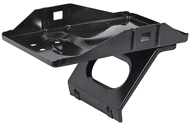 This custom battery tray features a later model Mustang steel battery tray with earlier style mounting bracket that will position your 1964-1966 Mustang's battery in the factory position while allowing the use of an "over-the-top" battery clamp. Includes the battery tray only; battery clamp and clamp bolts are available separately. We also offer a complete battery tray kit. Refer to part number # BTK3, includes this battery tray and the appropriate clamp and clamp bolts.