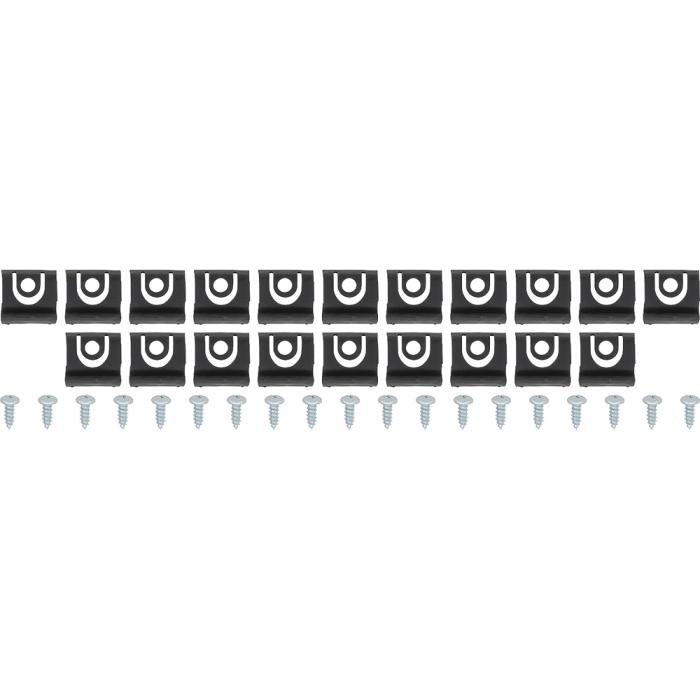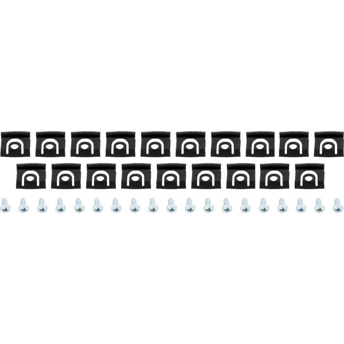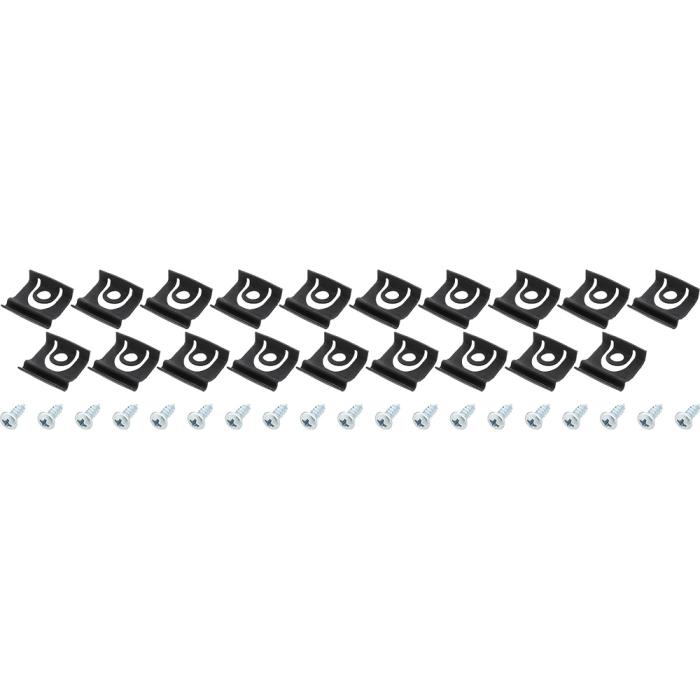 Replacement clip set designed to install rear window moldings for 1965-66 Mustangs. When replacing the rear window moldings it is a good idea to replace the clips. These are reproduction clips and screws used to attach the rear window moldings on 1965-66 coupe models.