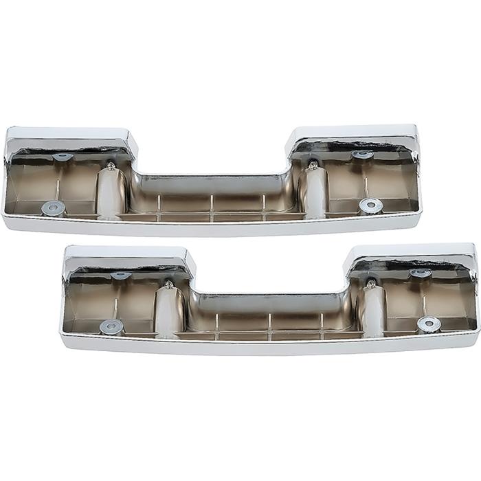 Reproduction of the original arm rest base designed for use on various 1965-67 GM models. Each arm rest base is manufctured to exact factory specifications in injection-molded ABS and features a bright chrome plated surface that replicates the original in quality and design. Sold in pairs. Note: For use with Chevy II Nova 2 door models. Refer to part number # N7952 for Chevy II Nova 4 door models. For use with Camaro and Firebird standard interior models.