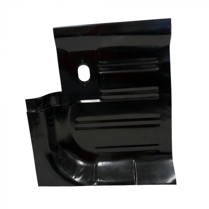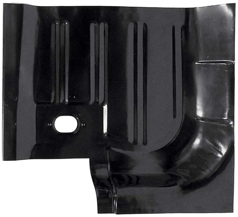 Reproduction of the original 1964-68 Mustang complete rear half floor section for LH drivers side side for convertible models. Located behind front seat. Original contour extends under lip of rear seat belt mounting on tunnel. Features all original contours, mounting holes and stampings. This panel is correct for 1964-68 models. It will also fit 1969-70 with slight modifications.