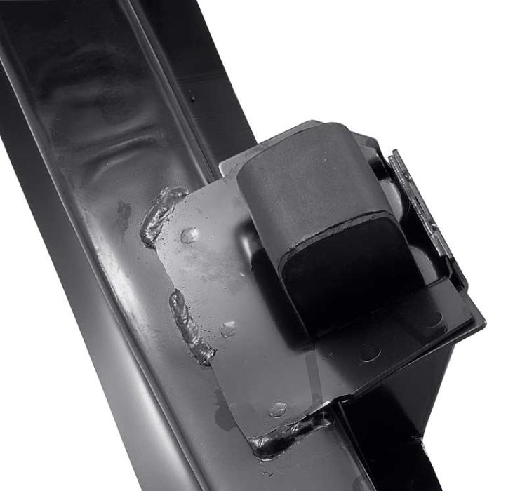 Reproduction of the original rear frame rail for use with 1964-68 Ford Mustang coupe models. Each frame rail is manufactured to original factory specifications replicating the original in quality, design, and fitment. This heavy gauge steel frame rail attaches to the lower rear of the body structure and extends all the way back to just past the rear leaf spring shackle mount. Includes the rear upper and lower torque box, front leaf spring mount, rear leaf spring shackle mount with rubber bushings, and the rubber axle bumper.