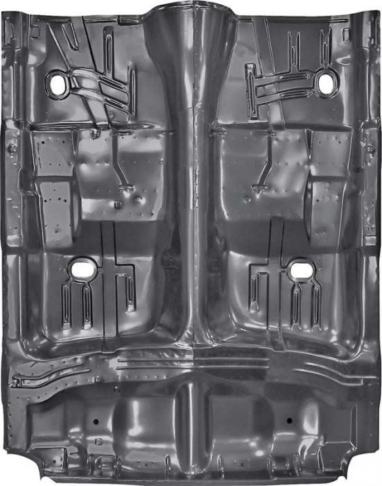 Reproduction of the original complete floor pan designed for use with 1965-1970 Chevrolet Impala, Bel Air, Biscayne and Caprice models. This complete floor pan is manufactured in stamped steel to OE factory specifications replicating the design and fitment accurately. Comes with black EDP coating for rust and corrosion prevention. The assembly is designed to replace the floor pan section from front to back without piecing it together by using small repair panel sections.