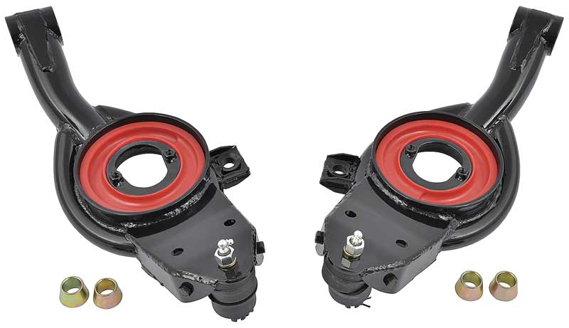 These tubular control arms are designed for maximum strength and visual impact. These upper arms are designed for stock replacement. All arms capture both sides of the bushing, unlike the originals that were only retained on one side. This safety feature allows full control with virtually no flex on the control arm when cornering. Sold in pairs.