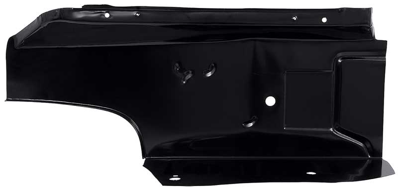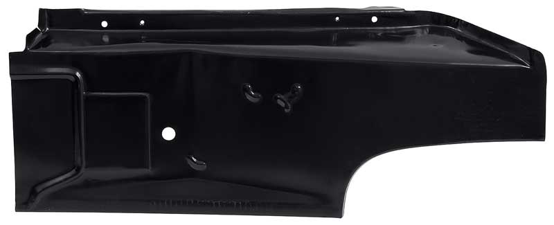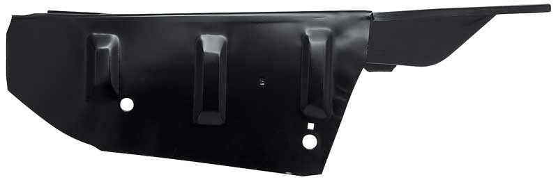 Reproduction of the original style floor pan manufactured in stamped steel for use with 1964-70 Mustangs. Each floor panel is manufactured in stamped steel to original factory specifications featuring correct contours for an authentic appearance and fit. Mounts to the RH passenger side of the gas tank where the tank and inner quarter panel meet. Fuel tank bolts to the inner portion of the trunk panel. Comes with a black EDP coating for rust and corrosion prevention.