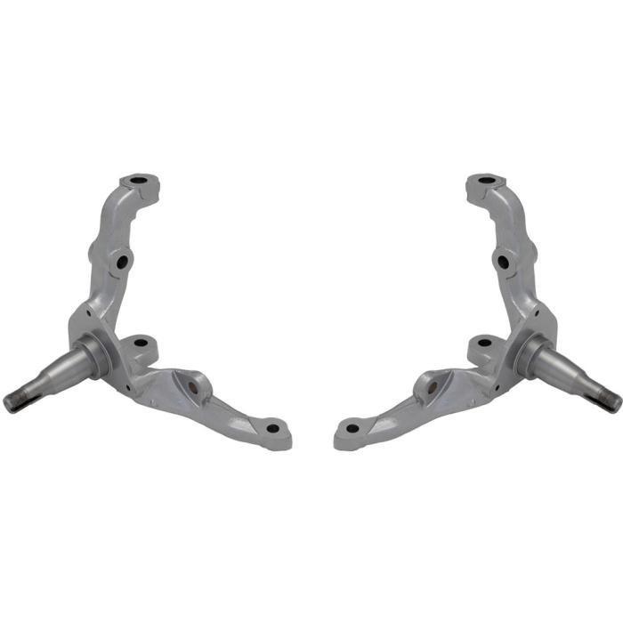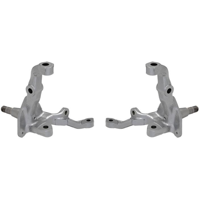 Reproduction OE-style large bearing heavy duty disc brake spindles for 1970-73 Ford Mustang. They are manufactured with modern steel alloys for improved durability and strength over the original spindles. These high quality Mustang spindles are powder coated for a long lasting cosmetic appearance and protection from the elements. These new spindles share Ford's original geometry, designed to be coupled with 1970-73 OE-style disc brakes or aftermarket brakes. Sold as a pair