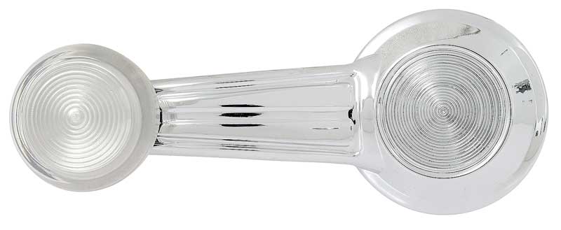 Replacement for the original inner door window crank handle designed for use on various 1965-90 GM models. Each window crank handle is manufactured in zinc die cast metal with a bright chrome finish. Features a non-riveted clear knob pre-attached to handle. Attachment clip included. Sold individually. Fits LH driver side or RH passenger side.